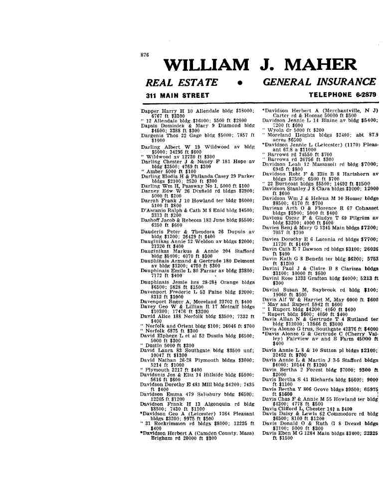 Worcester Directory DaviniPaul J and Claire