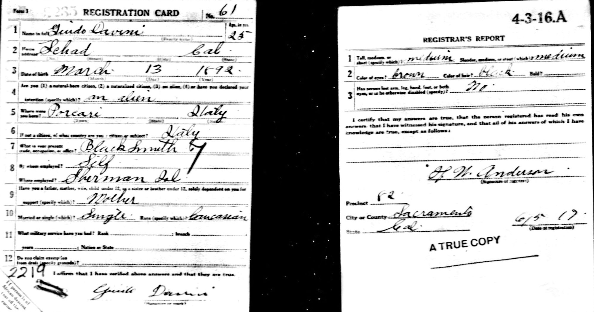 - 1908, San Francisco Davini Alfred(plumber), Andrew,
