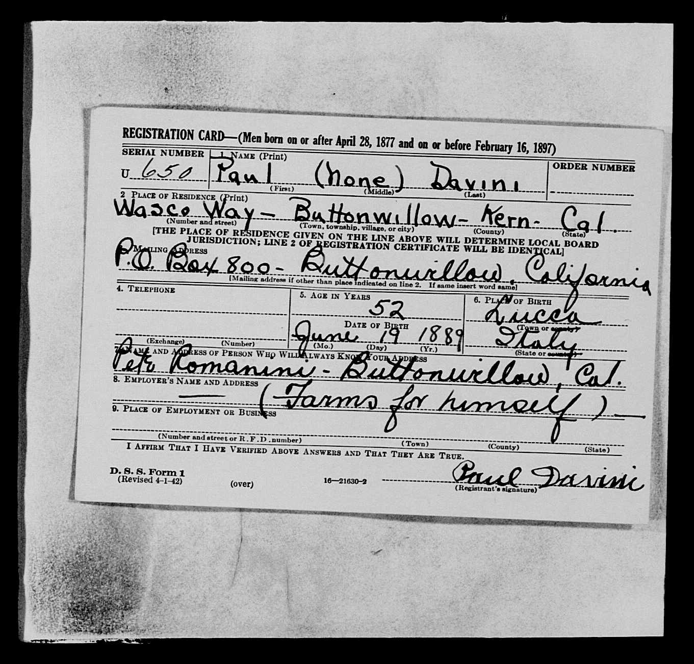 - 1942 2nd Worl War Registration